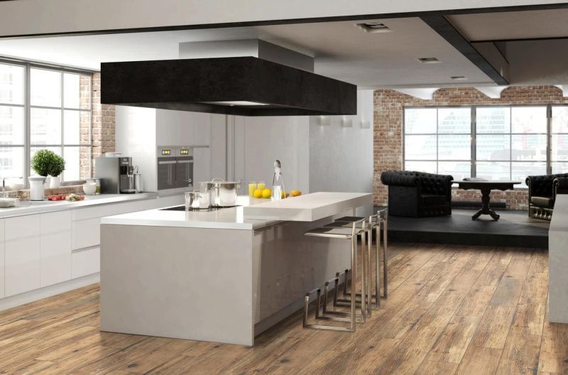 Линейка керамогранита Kraft Wood воссоздает текстуру и оттенки классического дуба, привнося в интерьер уют и природную элегантность.