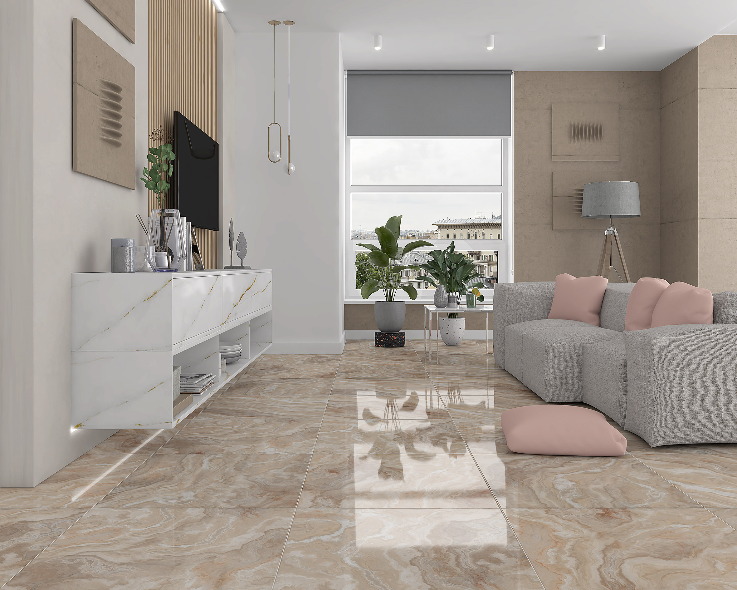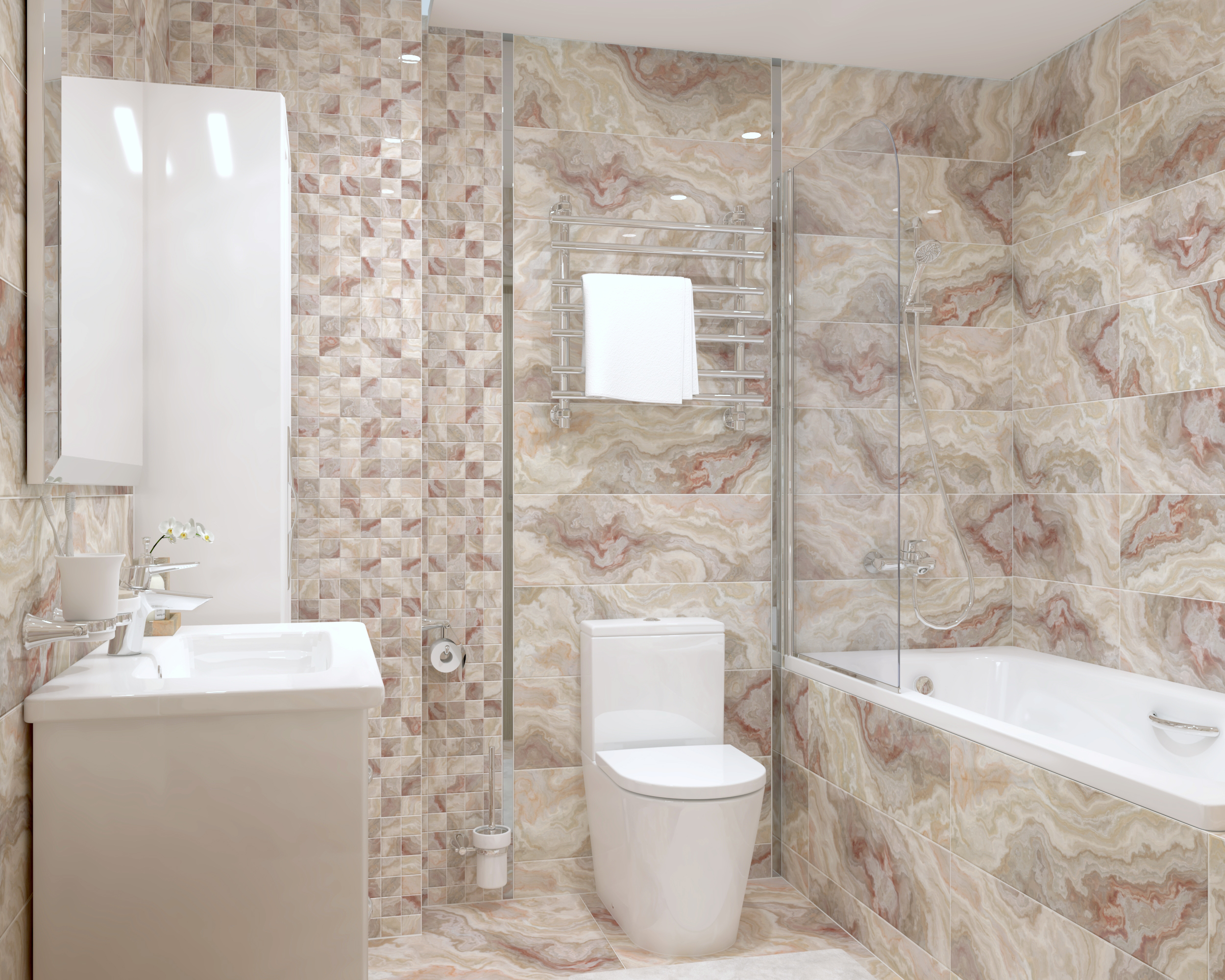 Производитель выпускает материал в белом, бежевом и светло-бежевом цветах. Полированная (глянцевая) поверхность? декорирование в виде мозаики и под оникс позволяют отделать помещение в эффектном современном стиле.