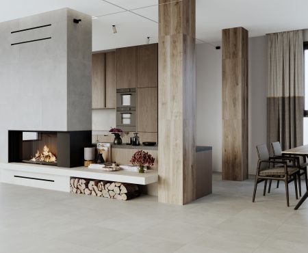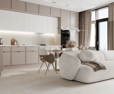 - Формат 60 х 60 универсален, допускает укладку в небольших по площади и просторных помещениях, формирует монолитное покрытие с минимумом швов.